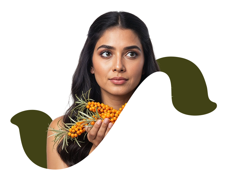 Sea buckthorn is a naturally grown orange berry in Ladakh and Himalayan regions. It is counted as one of the most effective Ayurvedic herbs in treating skin problems, metabolism, scalp, vaginal health, stamina, and many more due to rich nutritional compounds like vitamins C and E, rare omegas (3, 6, 7, and 9), flavonoids, and antioxidants.