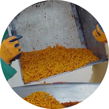 The berries are carefully cleaned to remove leaves and debris, then transported to the facility. They are washed again to ensure purity before further processing begins.
