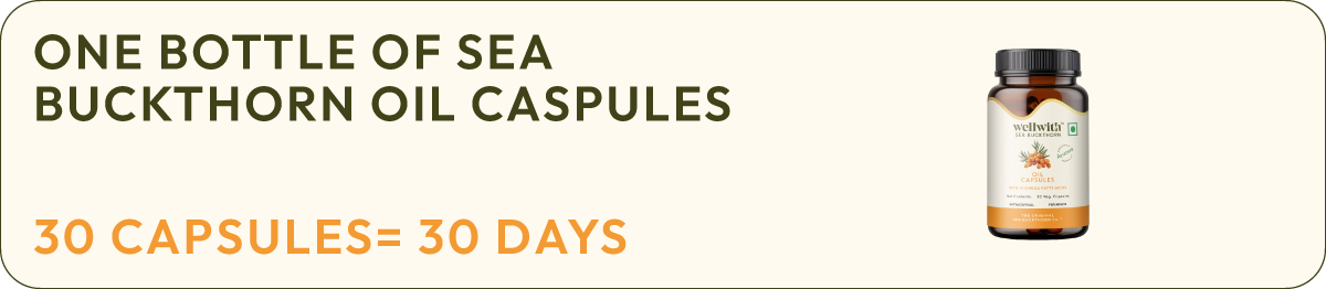 Discover the ancient wisdom of WellWith’s Sea Buckthorn Capsules - crafted for total wellness. The natural Sea buckthorn berry oil is made from the fruit oil of the sea buckthorn plant. This dietary supplement has sea buckthorn (bright-orange berries), sourced directly from the high-altitude, pristine valleys of Ladakh.